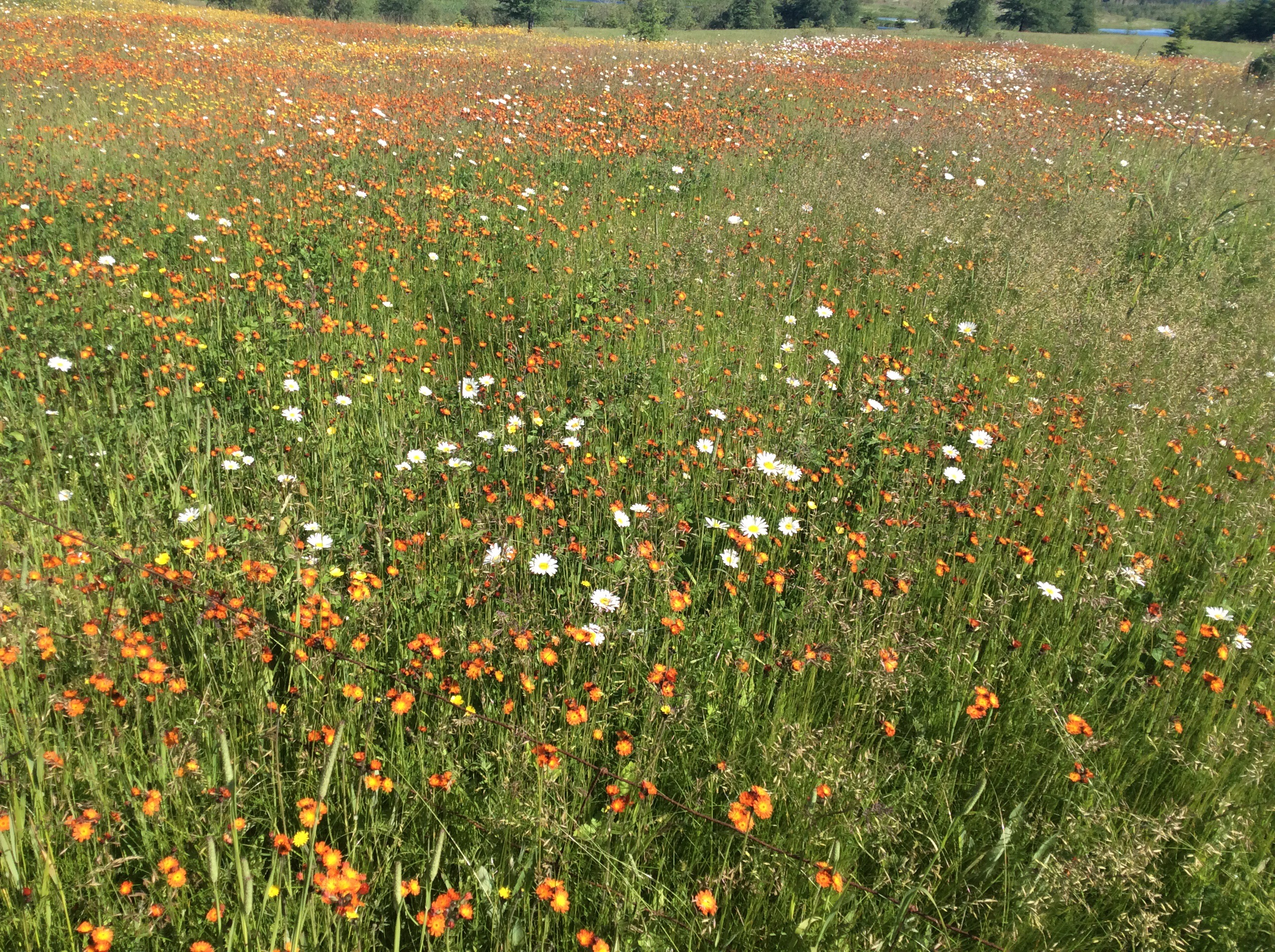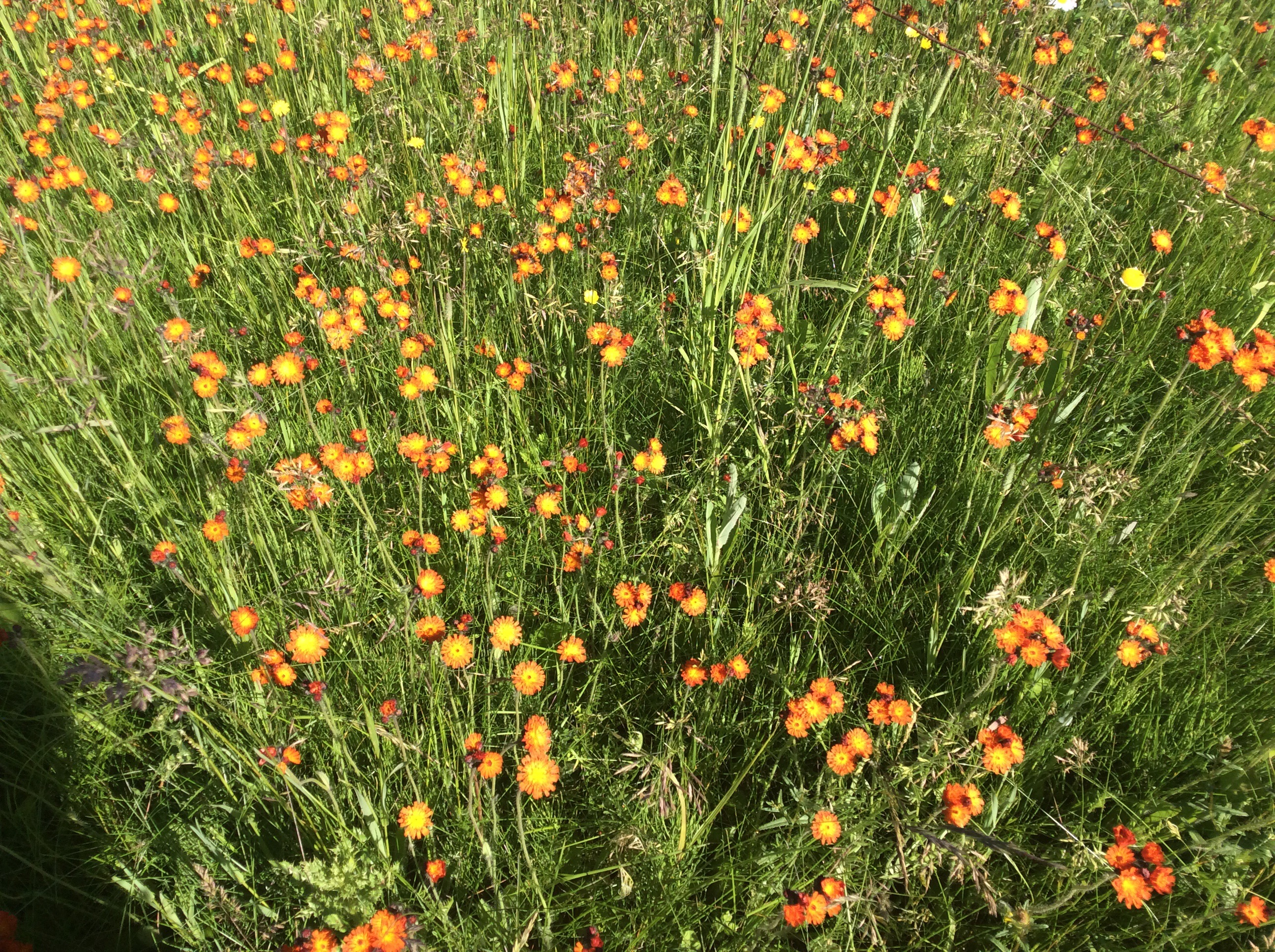 There are a lot of lovely wild flowers on the sides of the road, like these. Everything is green and lush because of all the rain this year.