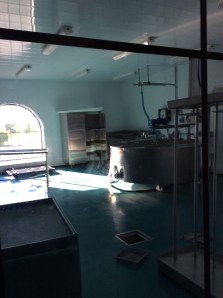 When we arrived he had prepared a beautiful salad,  .    a large plate of his beautiful cheeses,     bread and grapes. Of course we dove into it, but neither of us could do it the justice it deserved. We had just had a picnic of sandwiches, kale and potato salad in front of the grocery store. About 2 years ago he bought the building he now lives in and converted most of it into the cheese factory. We asked if he would give us a tour but it involved a lot of gowning up and hair nets, foot coverings, etc, that we decided not to do it. Instead, he showed us what he could through windows      and showed us a book of photographs that depict the entire process and we listened with great interest as he spoke. The building is perfect for this business.    It has a wide circular driveway and plenty of room for parking. It’s Spanish in style, wide, spacious and artsy. And it’s right on the highway, which allows for great access. He has only been in business for a few years and already grocery chains are asking him to supply their stores. Each cheese is named for a local river or lake. This cheese factory is going to do very well. It has a young, educated, dedicated and inspired owner who is not afraid to put in the time and work to make it successful. (He’s up at 4am and in bed by 8pm every night and puts in up to 120 hours of work per week. Plus, and this is the bottom line really……. his cheeses are yummy!!!