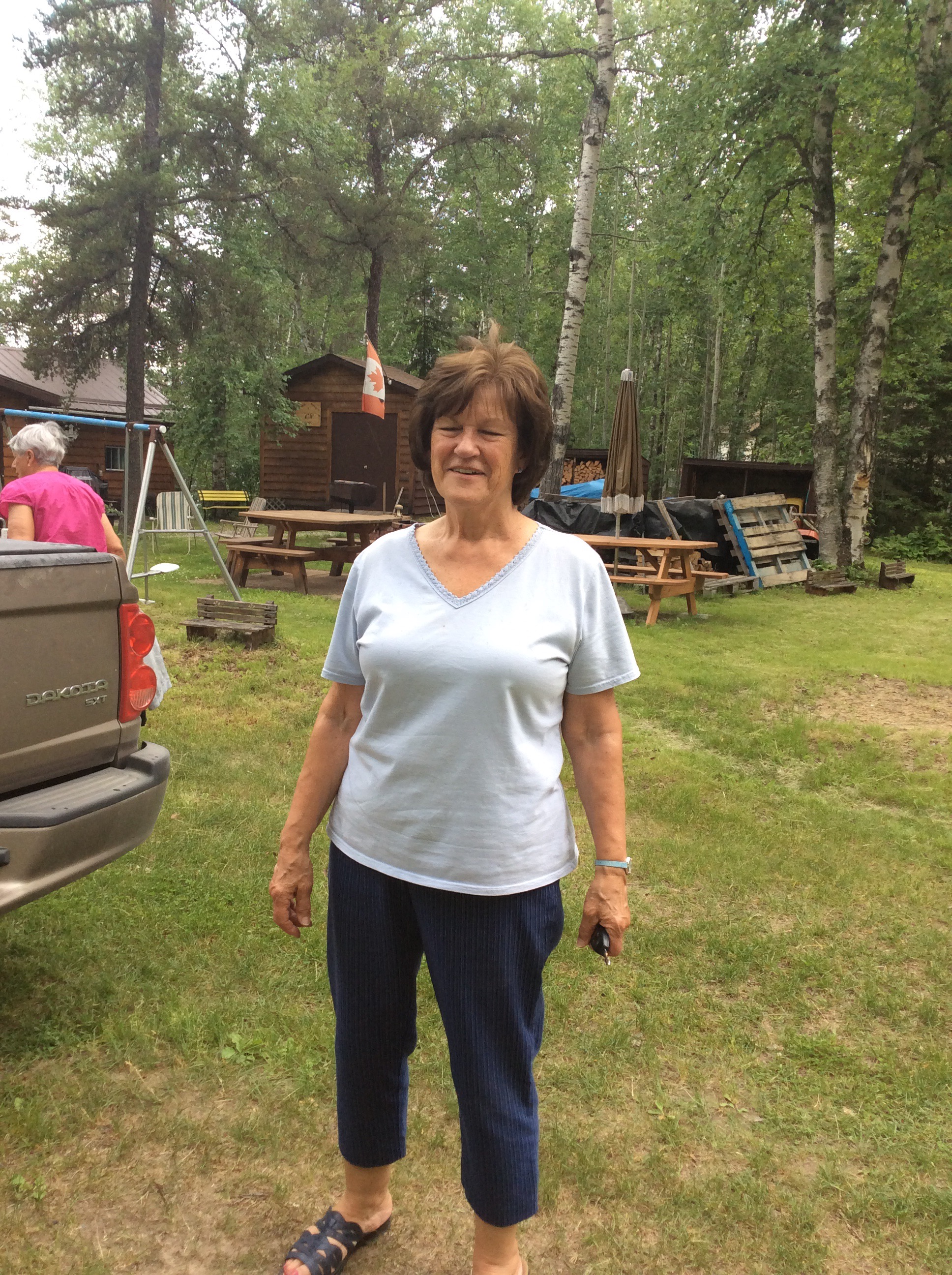 We left Big Nellie Lake and Fran and Marc at around 7:10 because we had to take the dauntingly hilly trip in to the hospital at Iroquois Falls. We did it in record time and as I was waiting for Charlie to have his bloodwork, a woman came in and sat a short distance from me. She asked me what I was working on out in the bush and I explained that we were actually cycling across Canada. Marilyn Chircoski.  is from Timmons but moved to Iroquois Falls to work as an RN and stayed after meeting and marrying her husband, Marvin, (Chick).     When she heard we were from Calgary she excitedly told me that their 13 year old granddaughter was leaving for Calgary soon for 3 weeks of ballet training. She had been selected out of a large group of competitors. She then told me that she and her husband were staying at their cabin east of Matheson. I told her that she was exactly the person we needed to talk to! Could she tell us what the roads and traffic are like out that way, and was the Little Fox Resort open and was there a grocery store? “No, the Little Fox Resort is closed but we live right close to it so, come stay with us!” It was an offer we could not refuse!
