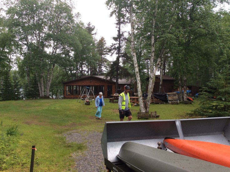 Judy Desantos    from Timmons was at her summer home at Monroe Lake. When we met her she was driving her truck down a gravel road in northern Ontario, just back from a trip to the grocery store where she’d replenished her supplies for the week. The back of the truck was full and the back seat was full too; she had her constant companion with her, her big old dog. She heard our plight, drove home, emptied the truck and left the dog confused and alone and came back, picked us up and drove us to the home of Marilyn and Marvin (Chick) Chirposki. Judy has a son in Calgary, a pediatric urologist, and a daughter-in-law who is also a doctor. Dr Lindsay Miller and Dr ? Desantos. It’s a small, small world folks.