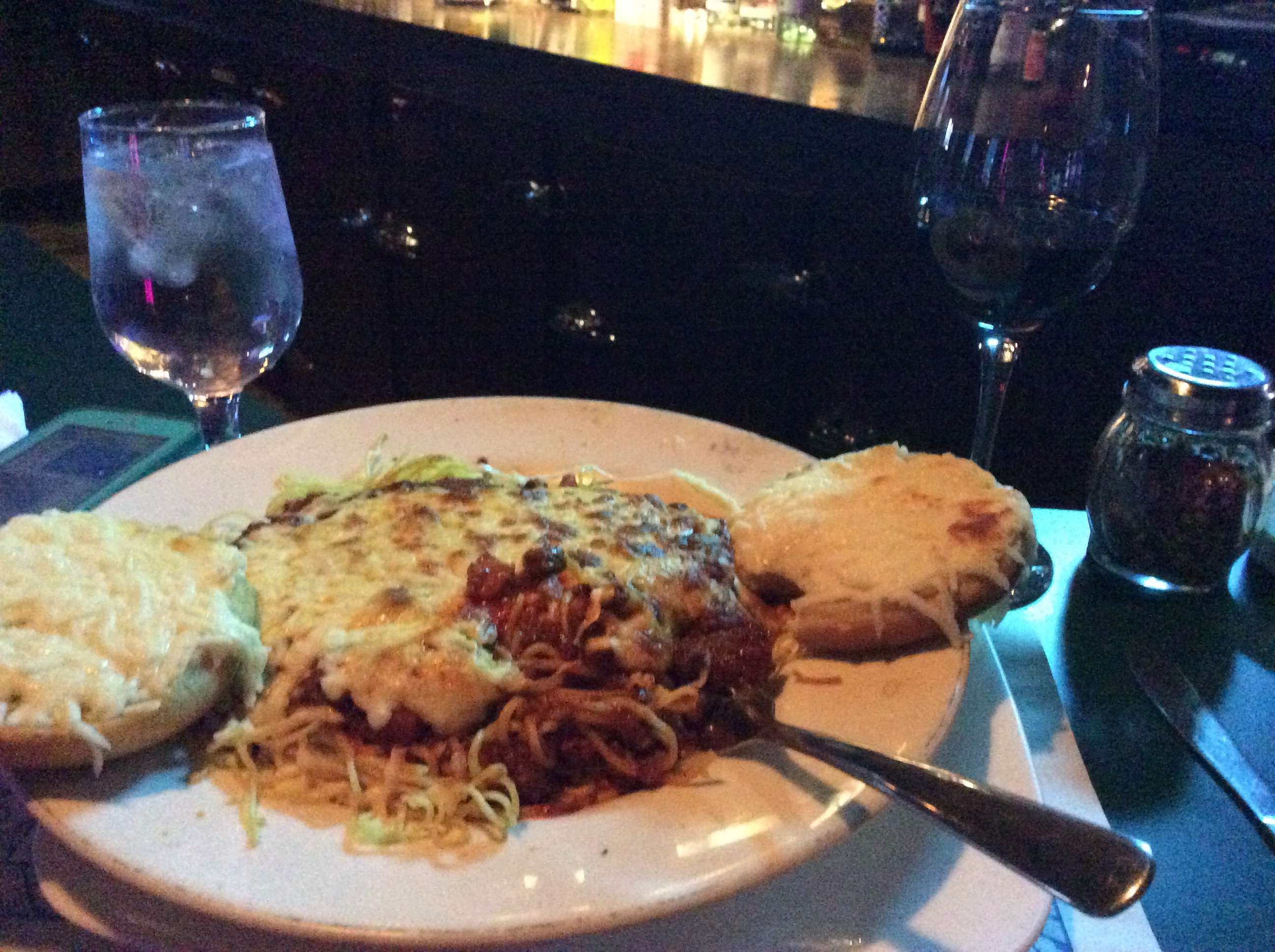 Thirty more kilometres and we were in Levincourt, and at a small motel. Hooray for motels! We enjoyed a warm shower and then went to their restaurant for spaghetti.    Did I eat all of this? No, I put a good dent in it and Charlie finished it after eating his double order. Bottomless pit, that man!