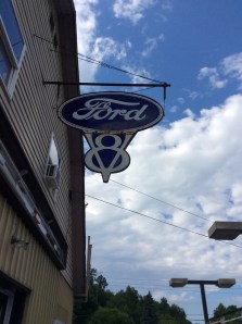 Alcove, a tiny community on our way supposedly had a campground. We stopped at a garage where there were three men working there, all looking forward to 15 minutes from then when they could close up and go home.  (This garage is kinda famous. It has an original V8 sign from the 1930’s and these signs are very rare! They have been offered a lot for it but they have chosen not to sell it. While we were there, a guy on a motorcycle stopped by to photograph it).  We asked about the campground and all 3 looked at each other. They didn’t know a thing about it. Well, there was one, but it was up the hill about 10 miles away….. and oh, yeah, there’s that other one, but it’s about 30 more km east. Then, one guy, Phil,    said “Why camp at a camp ground when you can go around the corner to the river and camp there for free?” “There’s a raft there and a lot of the locals hang out there but they won’t be there tonight because it’s Tuesday. Come on, I’ll show you.” So, we jumped in his truck and drove down to take a look.    Well, given all the options, this was home for the night. We drove back to our bikes and asked if there was a store nearby.  No, but Phil said he was going to the store anyway and that he’d drive us. Excellent! We bought canned food and beer, he drove us back to our bikes and we headed to our campsite. We picked a spot near the water and prepared to setup and  Phil, who decided to hang out with us for a while said it was fine but that it was snake grass. “What does that mean?”, I asked. “Well, there are snakes that hang out around there”. “Ohhhh!. Nooo!!!”