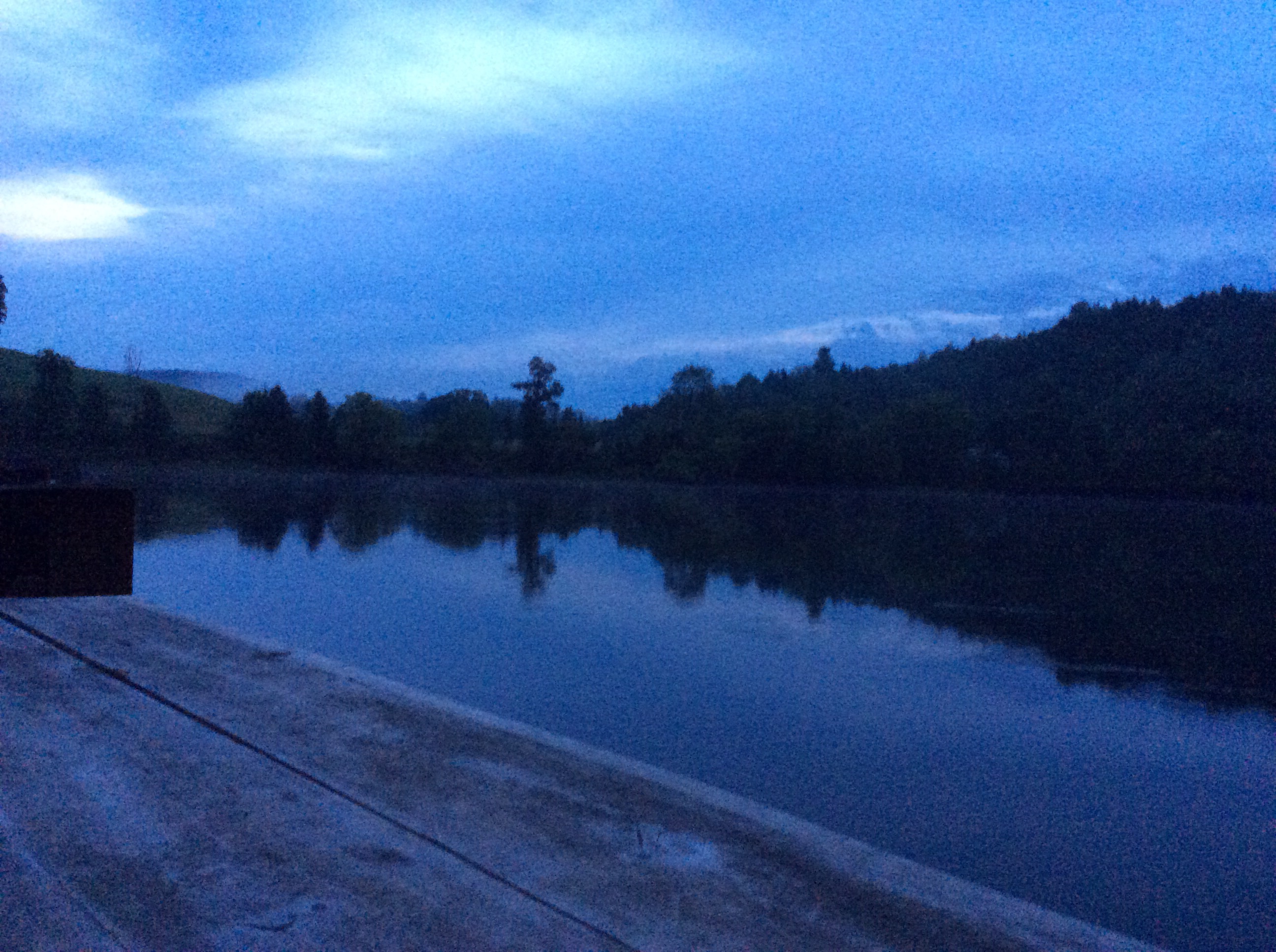 Once Phil and Dave left us it was quiet. Dennis didn’t come down to entertain us on the piano and we slept like rock-a-bye babies, awakening naturally before 5am. Charlie unfurled himself from his sleeping bag and ventured out first. “Wendy, its so beautiful out here. Come on out.” We sat outside at that long, long table and watched the day break over the water, enjoying the birdsongs and  light breeze for as long as we could.