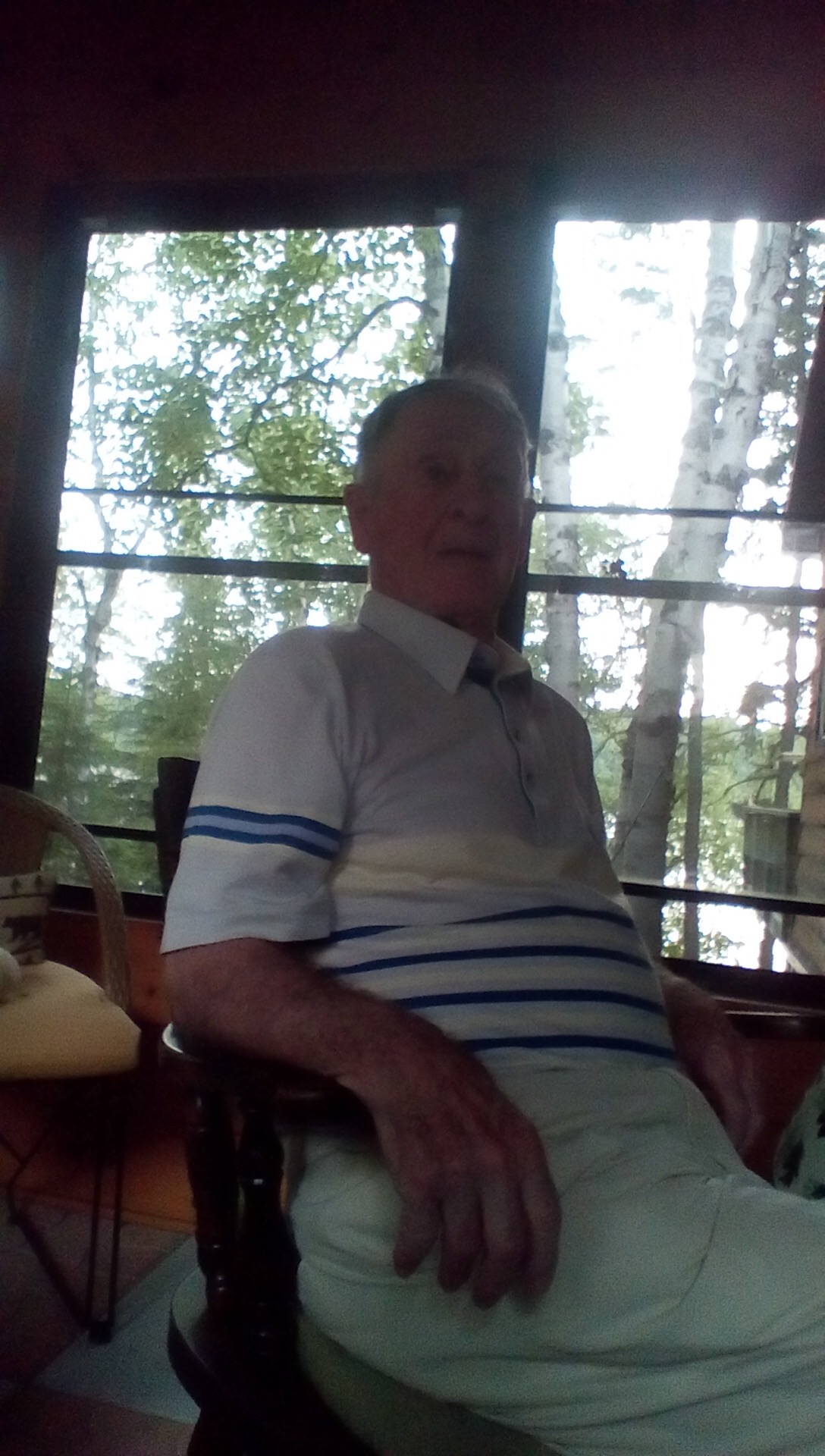Fran and Marc Delaplante,     (This is a picture of a picture) both retired teachers, enthusiastic cyclists, and all  around athletes,  (although right now Fran has a painful neck and Marc can barely walk from back pain), live on the beautifully manicured lakeside property that they bought many years ago and have worked very hard to improve. It’s lovely. They have another camp property up north, which doesn’t sound rustic  at all, which they fly into on their private Cessna, which is floated on the lake at the back of their property.   Marc loves to fly. He told us that when he was a teenager, he sold his motorcycle to pay for flying lessons. Now they regularly take off for Ottawa, where their daughter lives, or for anywhere else they feel like going. We had a nice dinner of salad, chicken, potato salad and broccoli while we conversed. They inquired as to our planned route and dissuaded us from continuing on highway 11, as the traffic to North Bay becomes increasingly more congested and the pavement is rough, the  shoulders narrow or nonexistent. Plus, we are headed for the hills! So we are now looking to go through Mathewson and Val D’Or. I would prefer to go through North Bay. I used to live there 24 years ago when I attended Canadore College for dental hygiene. One of Charlie’s former students has parents there who have graciously offered to host us. So in some ways we regret not continuing through North Bay. But, seeing as we both enjoy being alive, we have decided to take a different route. It’s more remote but we’ll get through it.